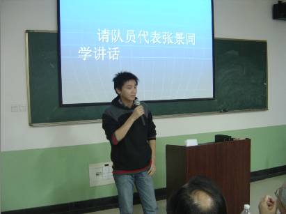 队员代表张景同学代表全体队员讲话,感谢学校领导的重视和关心,表示一定发挥聪明才智、团结协作,力争佳绩。