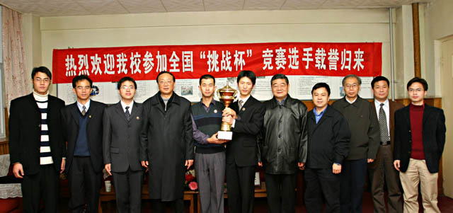 由团中央、教育部、中国科协、全国学联、上海市政府主办的第九届“挑战杯”飞利浦全国大学生课外学术科技作品竞赛终审决赛11月18——22日在复旦大学举行。我校本次参赛的六件作品全部进入决赛,其中光电创新基地团队项目“新体制干涉成像光谱仪”、机电工程学院团队项目“低可探测性单兵无人侦察机”获得一等奖;“病险水库隐患检测及险情预报系统”获二等奖,其余三件作品获三等奖。以总分240分的成绩夺得“优胜杯”并获得优秀组织奖,我校代表团载誉而归校团委负责老师首先向各位校领导汇报了此次比赛的有关情况,校党委副书记、副校长杨宾就本次“挑战杯”的作品选拔,各部门对此次竞赛工作的大力支持,以及我校现在开展学生课外科技创新活动的相关情况向大家做了简要的介绍。