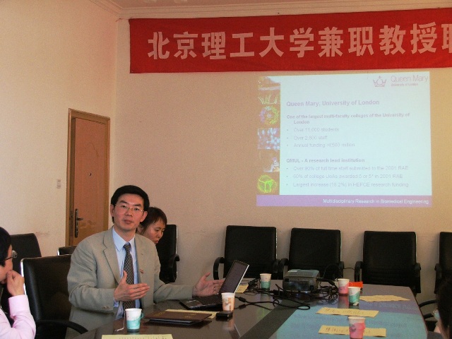 聘任仪式上首先由生命学院罗爱芹副院长介绍了王文教授的基本情况。王文教授现为英国伦敦大学玛丽女王学院教授,是极其活跃的青年学者。在细胞力学、干细胞研究、生物材料、生物传感技术、空间生物科学等方面具有很深的造诣,曾获得国家自然科学基金委的杰出青年基金和科技部基础研究基金的资助。王文教授近年来一直关注国内生命科学的发展,是海外华人华侨的杰出代表。
