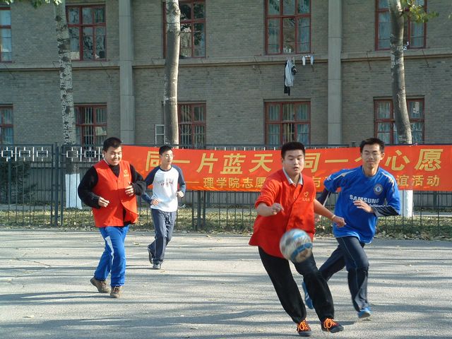 11月23日,我们邀请了利智中心的师生代表来我校参观、联谊。上午9:30,中心的两名老师和九名学员来到了学校东门,在我们志愿者的陪同下参观了校园。接着,便开始了活动的核心部分--小型足球赛。我们会员和中心学员混编为两队进行比赛。智力的缺陷并未使学员们失去信心和斗志,他们在球场上表现得十分顽强,比赛进行得很顺利。赛后,我们为他们颁发了纪念品,并合影留念。看到他们尽兴的笑容,我们内心感到从未有过的满足,再一次体会着奉献的快乐!最后,我们在七食堂简单地吃了午饭。临行前,中心老师再次对我们协会的老师和同学付出的努力表示感谢。车上,学员使劲向我们挥手,从他们的脸上,我们读到了单纯的快乐!