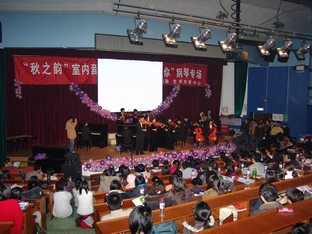 “秋之韵”室内音乐会是由校团委、艺教中心主办的传统音乐会,从1998年开始举办,至今已经举办了8届。我们本着将高雅艺术在校园内进行普及与推广的目的,受到了大家热烈的欢迎。我们对支持和关心我们大学生艺术团成长、发展的朋友们表示衷心的感谢。也希望我们的艺术团,能在音乐的道路上取得更好的成绩。