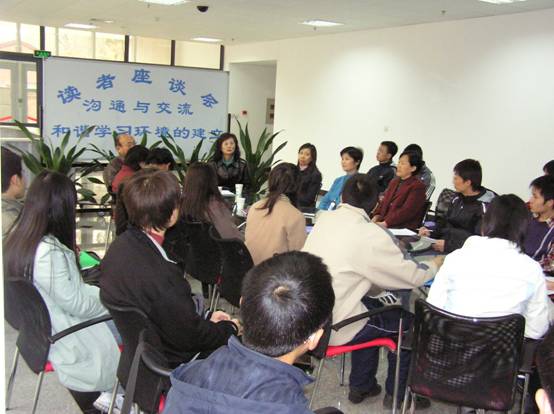 日前,由校图书馆、校团委、校学生会权益部共同举办了“图书馆与读者座谈会”。本次座谈会以“沟通交流——和谐学习环境的建立”为主题,目的一方面是针对当前读者在图书馆中占座、吃东西、吸烟、打电话等不文明的举止行为,向同学们征集建议,为杜绝不文明的行为制定出切实可行的解决办法或规定;另一方面,是想通过面对面的沟通与交流,听取读者对图书馆的意见和建议,作为改进工作的参考。