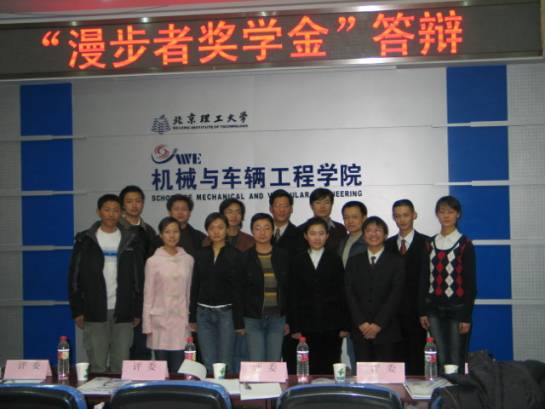 2005年12月13日晚,第二届“漫步者”奖学金答辩仪式在机械与车辆工程学院车辆重点实验室举行。“漫步者”奖学金资助者爱德发集团董事长张文东先生、肖敏总经理亲临现场,担任评委。ob真人竞猜ob真人竞猜处处长刘明奇老师、校团委副书记代方震老师、机械与车辆工程学院副书记副院长也担任了评委工作。