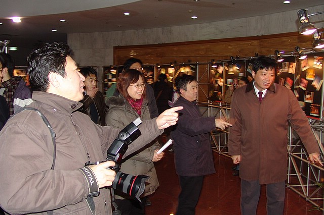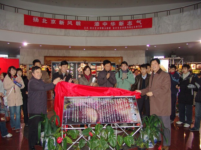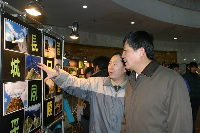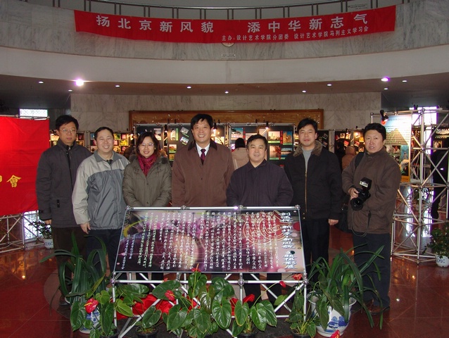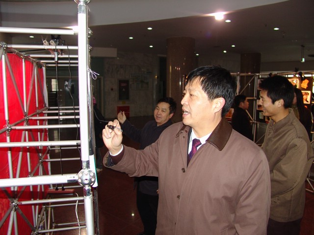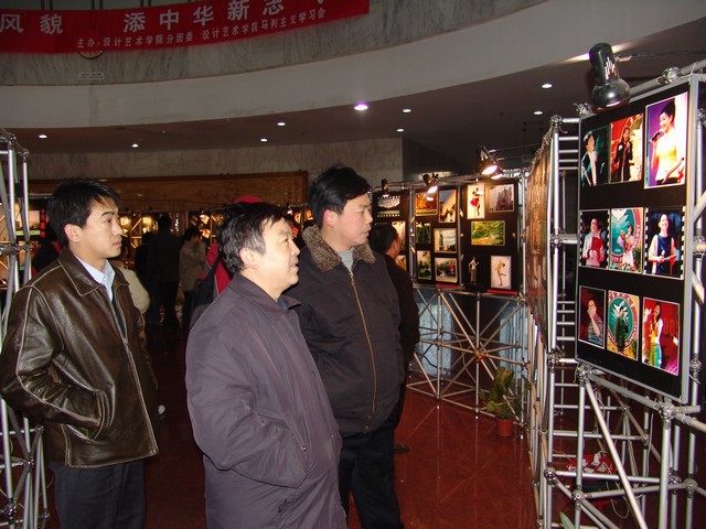 揭幕仪式之后,杨宾和侯光明等校领导仔细参观和点评参展作品。