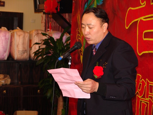 居民管理委员会主任韩棋宣布婚龄超过50年的退休职工夫妇名单,并发放了慰问纪念品。