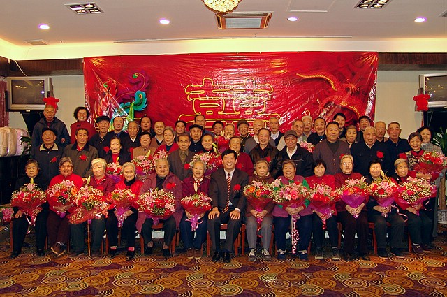 12月28日,我校居民管理委员会为学校退休职工中婚龄超过50年的23对金婚夫妇举行了庆典。