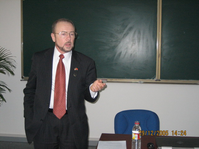 2005年12月29日下午,美国威斯康星州中小企业联合会主席杰姆·库茨先生在国际教育交流大厦706室为管理学院学生论讲了他上报芝加哥联邦储备银行的调查总结。杰姆·库茨先生受芝加哥联邦储蓄银行主席特指上报芝加哥联邦储蓄银行。他为联邦储蓄 “灰皮书”或其他研究项目提供信息,职责是上报维斯康星洲南部地区的制造业、就业和总体经济情况。