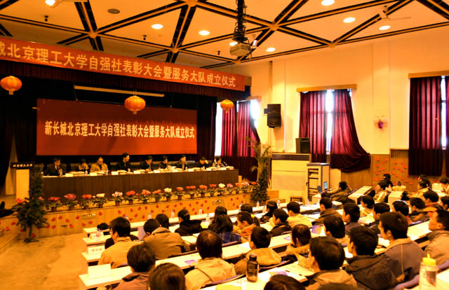 12月23日下午,我校在七号楼一层报告厅隆重举行自强社2005年表彰大会暨服务大队成立仪式。副校长赵显利,校团委书记张启鸿,ob真人处处长刘明奇、副处长娄秀红、张振华,新长城项目部主任助理陈红涛,项目主管颜志涛和各学院资助工作负责老师参加了会议。