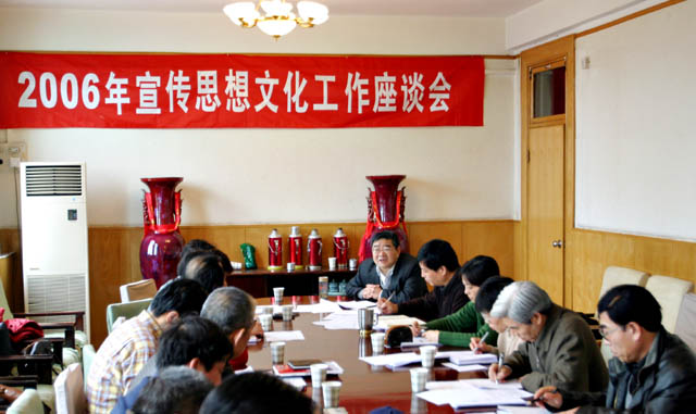 日前,我校在主楼四层会议室召开了2006年宣传思想文化工作座谈会。参加会议的有党委书记焦文俊、党委副书记侯光明以及校文化建设领导小组成员单位的负责人。与会同志结合《ob真人“十一五”文化建设规划纲要(征求意见稿)》和本单位的工作,对学校2006年文化建设工作进行了深入的研讨。