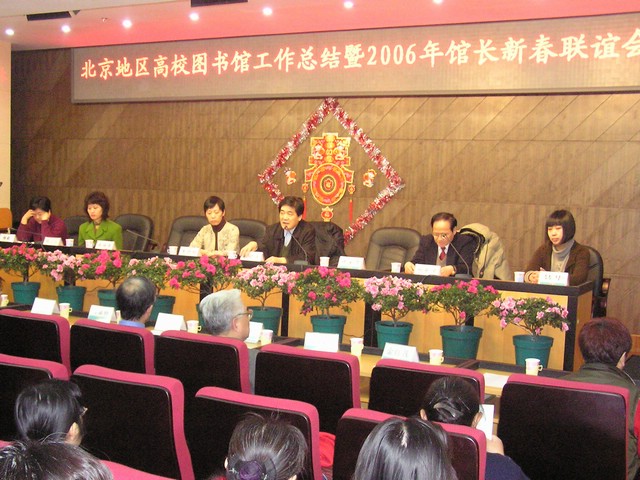 一年一度的北京地区高校图书馆工作总结暨馆长联谊会于2006年1月19日上午在我校图书馆报告厅举行,来自北京地区各高校图书馆馆长和相关机构负责人共一百多人莅临此会。