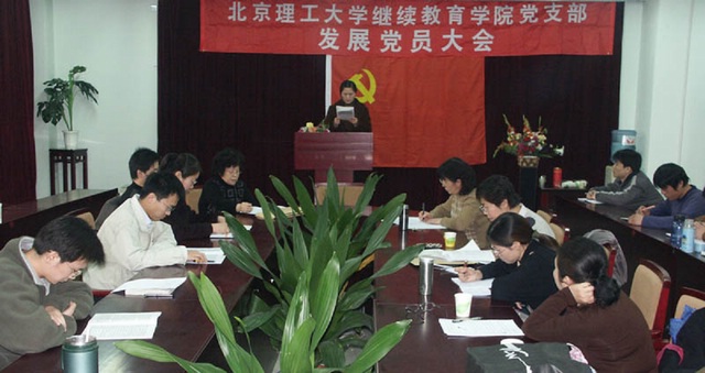 参加大会的有继续教育学院党支部书记弭晓英、院长陈晋南、副院长刘世奇、李小平及支部20名党员。参加会议的还有2名班主任和7名入党积极分子。这次发展学生党员是在学校党委、党校、组织部、直属机关党委的领导和支持下,党支部做了大量细致的工作,开办了党课培训,参观了抗日战争纪念馆,学习了中共中央、国务院《关于进一步加强和改进大学生思想政治教育的意见》,举行了党课结业典礼。这是自继续教育学院成立近50年以来第二次发展学生党员,共有5名学生,他们是计算机科学与技术专业的田康志、张艳青、工商管理专业的段全义、刘鹏、武燕群,这些同学都是我院品学兼优的学生。