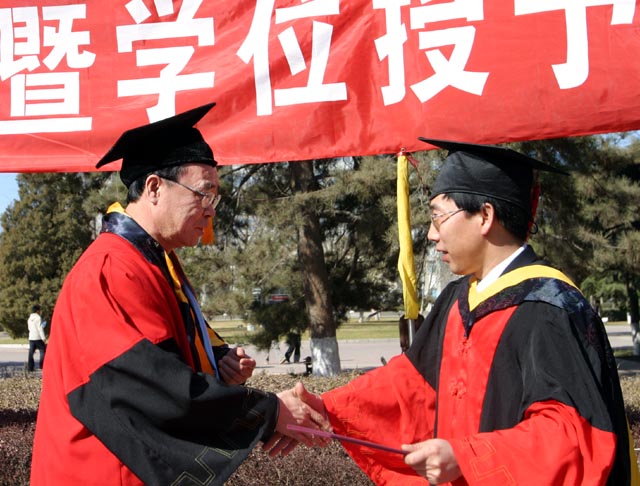 今年是机电工程学院连续第三年在中心花园举行开放式毕业典礼和学位授予仪式。本次毕业典礼更是邀请了部分研究生导师和学生家属一同参加,充分体现了我校以学生为本的育人理念,并且为在校生起到了良好的教育作用。2006年机电工程学院春季共毕业243名研究生,其中博士生16人,硕士生227人,有近50%的同学到兵器、航空航天等国防系统内单位就业,他们即将奔赴全国各地,为祖国的现代化建设贡献自己的力量。