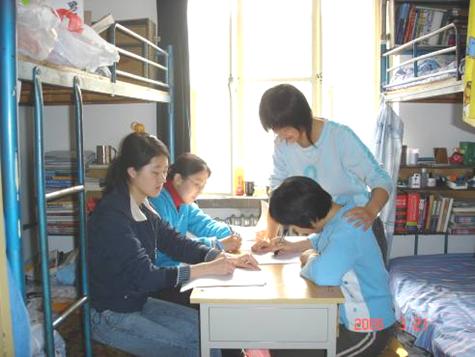 3月21日下午,户外阳光明媚,13号学生公寓420宿舍里几名同学都围坐在桌边埋头看着什么,还不时地讨论讨论,气氛异常热烈,走进一看,原来她们正在宿舍学生党员孙荟的带领下学习胡锦涛总书记提出的关于“八荣八耻”的讲话……