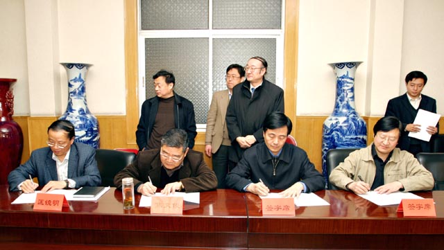 2006年3月29日,我校“2006年年度工作任务责任书”签字仪式在主楼三楼会议室举行。校党委书记焦文俊、校长匡镜明、常务副校长李志祥等领导出席了签字仪式,党办、校办、研究生院、ob真人处、保卫处、招生就业工作处、教务处、科技处、人事处、组织部等有关职能部门领导,各学院书记、院长参加了签字仪式。焦文俊、匡镜明与各学院书记、院长签署了“2006年年度工作任务责任书”。
