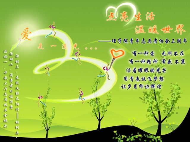 志愿者协会三岁了,协会的志愿者们一定会更真诚地去帮助身边的人,理学院青年志愿者协会的未来也会越来越好。
