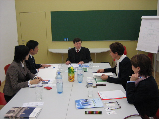 Mettinger副校长向代表团简单介绍了维也纳大学。维也纳大学始建于1365年,是欧洲最古老的几所高校之一,拥有7千多名教师和约6万4千名在校生,其中约13%为留学生,有包括计算机、自然科学、生命科学、社会科学、经济等在内的15个系,校园分布在维也纳各个城区,由网络连接,进行数字化管理。维也纳大学目前在改革当中,计划扩大研究生的招生规模,拟建立12个研究生院,目前已有包括自然科学、生命科学和教育等6个研究生院初具规模。维也纳大学鼓励遍布校园的合作研究,即鼓励教师与教师间,系与系之间的合作研究,并期待与国外高校进行广泛的交流合作。目前与欧洲、美洲、亚洲和大洋洲的30多所高校建立合作关系。