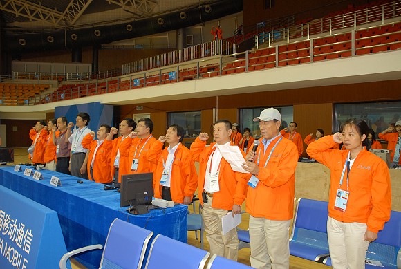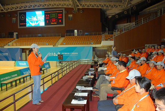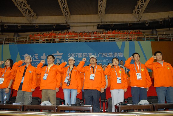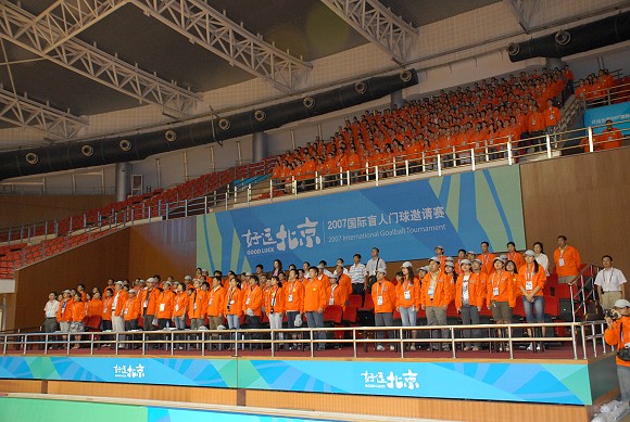 9月13日至16日,“好运北京”2007 国际盲人门球邀请赛将在ob真人竞猜体育馆举行。为了确保比赛的顺利进行,9月9日下午,ob真人竞猜奥运场馆志愿者团队举行了赛前动员誓师大会及发奖仪式、紧急疏散的活动演练。