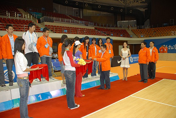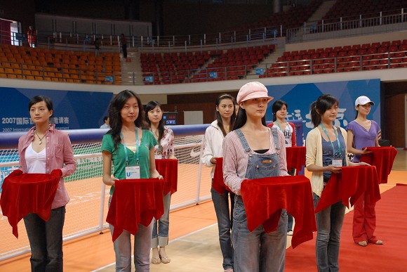 青春亮丽的女大学生们负责赛事的礼仪工作。