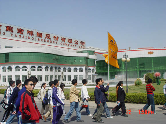 下午,实践团一行又来到了顺义区的燕京啤酒厂进行调研。作为顺义区的大型企业,燕京啤酒在20年的时间中发展迅速。