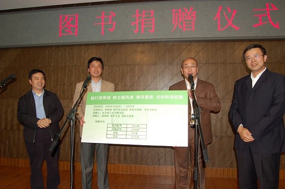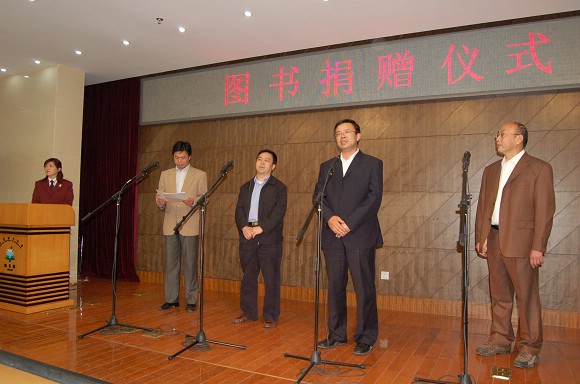 校党委副书记、副校长杨宾,副书记赵平,校团委书记张启鸿和图书馆馆长曹树人等出席了本次活动。作为捐赠图书活动的策划人,赵平副书记发表了感言,希望同学们用好学校图书馆,关心学校图书馆,爱护学校图书馆,并力所能及地为图书馆作出自己的贡献。