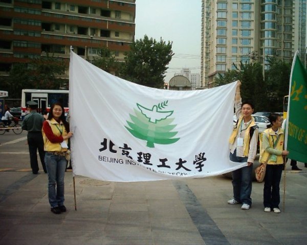 在开幕式上薛彬同学代表我校接过科技志愿者的旗帜,宣誓成为新一代的科技人才,成为奥运科技志愿者。