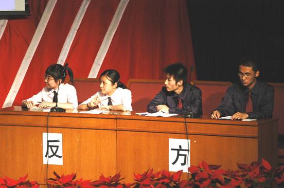 2006年5月19日晚7点整,中教一层报告厅里气氛热烈紧张,两年一度的全校辩论赛总决赛即将开赛。机电工程学院代表队由2005级新生组成,他们是周立、陈雯、戴本壮、范睿。经过一场唇枪舌箭的辩论,最后机电工程学院代表队凭借着默契的整体配合和出色的个人表现在决赛中胜出,摘得本次全校辩论赛冠军的桂冠。自此,机电工程学院在过去六次全校辩论赛中取得了五次冠军。