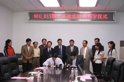 5月25日下午3时半,ob真人和日本NEC公司联合开放实验室签字仪式在我校1号楼二层会议室隆重举行。