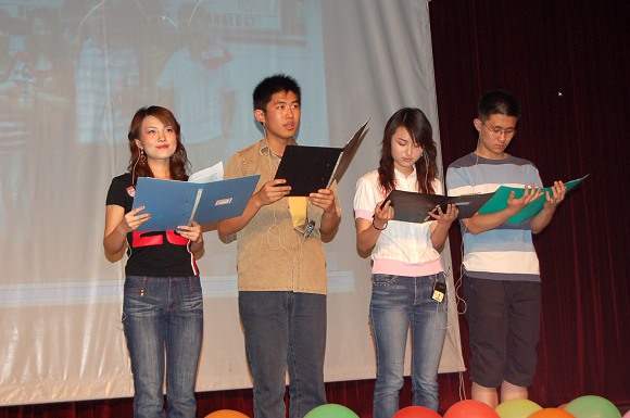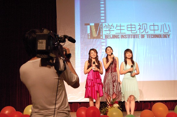 一组请出了6名美女主播表演歌曲串唱,她们甜美的嗓音得到了台下观众掌声的认可;三组以DV的方式讲述了学生电视中心每天的具体工作,并通过大屏幕让观众亲眼目睹了晚会现场的编辑和摄像的工作状态。