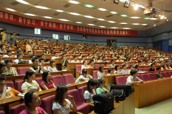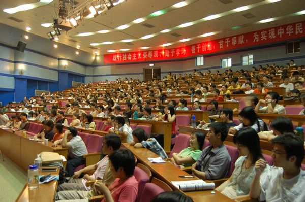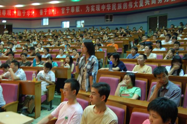 讲座开始时,中教报告厅内并没有坐满观众,但随着讲座的进行,从报告厅内传出的掌声和笑声吸引了许多同学赶到会场聆听谢飞导演的精彩演讲。