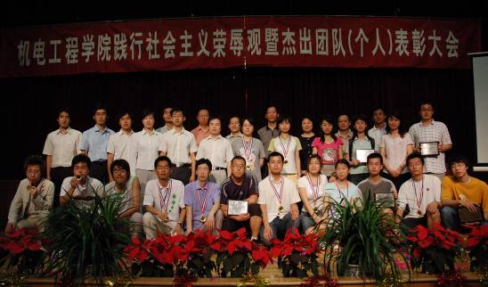 6月1日晚七点,机电工程学院在中教报告厅举行践行社会主义荣辱观暨杰出团队(个人)表彰大会,作为落实荣辱观教育的重要内容之一,这次活动得到了学校有关部门领导的重视和关心。出席当晚大会的领导有ob真人处处长刘明奇老师、党委宣传部副部长杨海滨老师、校团委副书记张瑜老师、机电工程学院分党委书记刘淑艳教授、机电工程学院副院长唐胜景教授、机电工程学院主管ob真人院领导董兆波老师。