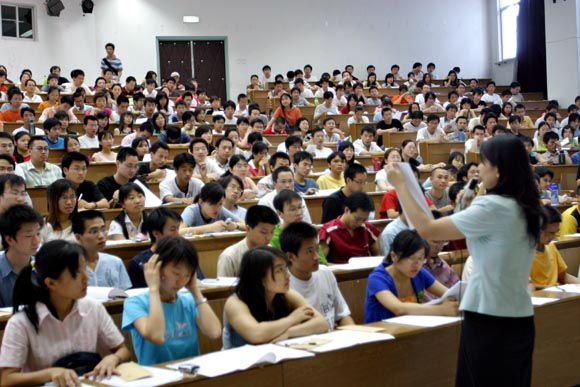2006年6月8日,我校在中心教学楼三层报告厅举行了国家助学贷款还款确认会。图为银行工作人员向毕业生详细讲解还贷的有关注意事项。