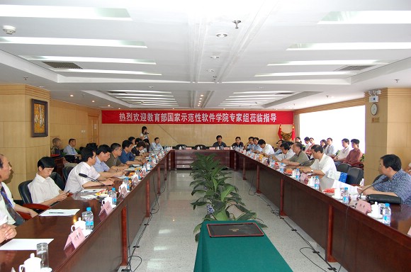 16日上午,在国际交流中心会议室,教育部验收核查专家组对我校国家示范性软件学院的综合考评后进行意见反馈。出席意见反馈会议的学校领导有:党委书记焦文俊、副书记侯光明、副校长孙逢春、赵显利,还有学校相关职能部门和软件学院的各级领导及师生代表。