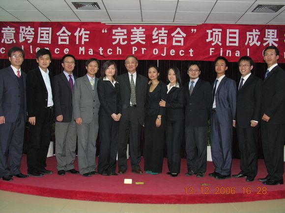 2006年“完美结合”中国项目组六位小组成员全部是ob真人竞猜管理与经济学院的2005级研究生,他们勤奋踏实的工作态度是项目成功的重要因素。同时项目还得到了ob真人竞猜管理学院的三位市场专家和财务专家的指导,以及来自学校和学院领导的支持和关心。所有这些保证了“完美结合”项目的成功。