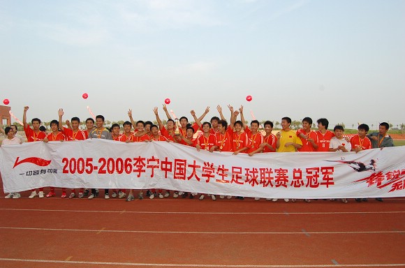 2005~2006李宁中国大学生足球联赛总冠军队伍闪亮登场。