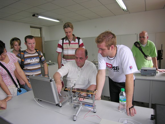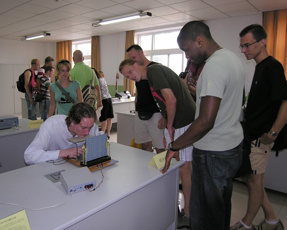 7月7日上午,荷兰UTRECHT大学(www.hu.nl)访华团一行21人来我校参观交流。师生们先来到我校的工程训练中心参观,在训练中心老师的指导下同学们还亲自操作了实验仪器。