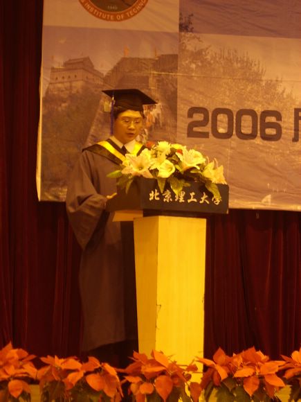 物理系硕士占伟同学代表全体毕业生表达了对老师们无尽的敬意和对同学们无限的友爱。一句“ 存鹰之心于高远,取鹰之志而凌云,习鹰之性以涉险,融鹰之神在山巅”,更表现出当代毕业生壮志凌云。