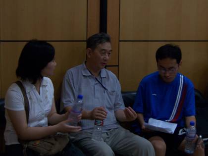 正在向老科普专家讨教经验的穆磊