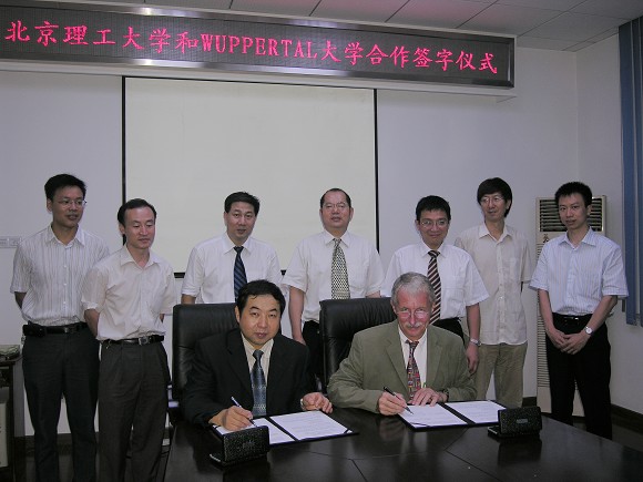 签字仪式由国际交流合作处王庆林处长主持,同时参加签字仪式的还有机械与车辆工程学院项昌乐院长、左正兴副院长、院长助理邹渊、热能与动力工程系马朝臣主任、张卫正教授、冯慧华副教授以及德国伍泊塔尔大学机械工程系袁荒教授。