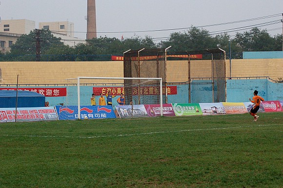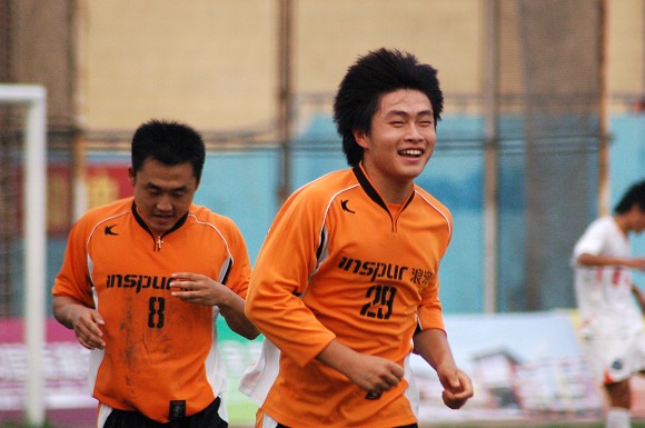 刚刚换上场的29号年轻球员秦阳在门前候个正着,抬脚勾射将比分锁定了3-0的比分。