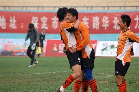 我校师生中的部分铁杆球迷也远赴保定进行现场助威。