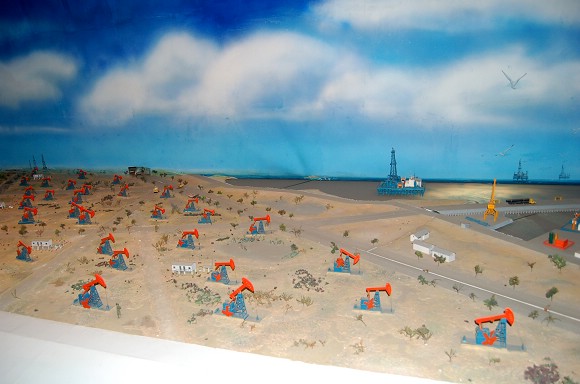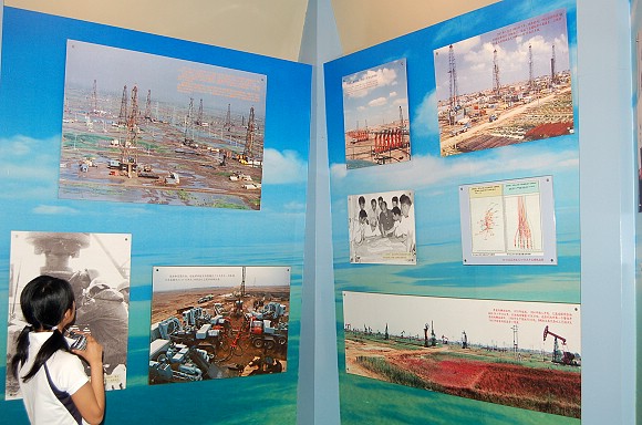 油田发展厅展现了胜利油田的创业历程,有长14米、高3米的勘探形势图,长6米、宽4米的油田建设模型,有从各个典型地区的不同地层中钻取的岩芯等;科技成就厅主要展示了胜利油田的科技成果。