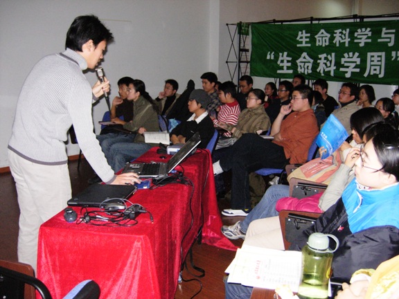 在举办展览的同时,生命学院11个研究生学术团队还在展览特别开辟的“学术沙龙”区域,结合每个学术团队的学术科研特点,开展专题讲座介绍活动,将学院各个方面的科研学术动态展现给观众,这一创新举措,着实吸引了同学们,现场气氛十分热烈,效果十分明显。展览现场提供的饮料和小食品,为参观者提供了十分人性化的服务,得到了充分肯定。