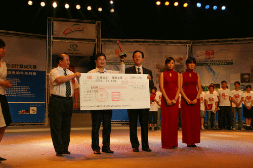 8月26日由北京市科学技术委员会、中国汽车工程学会、中国工业造型设计协会主办,我校电动车辆工程技术中心和北京吉工大汽车技术开发有限公司承办的2006中国汽车造型设计精英大赛——奥运电动车系列设计赛总决赛在北京成功举办,最终宇通设计师李正平设计的奥运大客车获金奖,我校参赛选手获得3个单项奖和1个优秀作品奖。