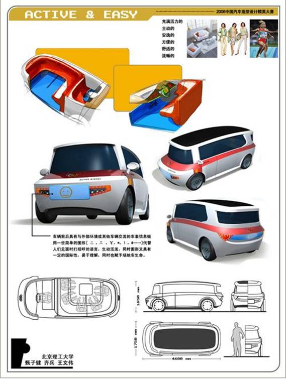 “2006中国汽车造型设计精英大赛—奥运电动车系列赛”启动以来受到了社会各界的广泛关注,6月1日对来自全国600多幅参赛作品进行了第一轮评选,从中挑选了70多名入围设计者的100多幅符合要求的设计作品。从设计作品来看,所涉及的范围广泛,不少设计者都能紧扣活动主题,充分体现了奥运电动车的环保理念,造型前卫、创新、时尚,与当前汽车造型流行趋势相近,并具有实用性,生产可行性,其中包括各种场馆用车、先导车、大客车、通勤车、救护车等。