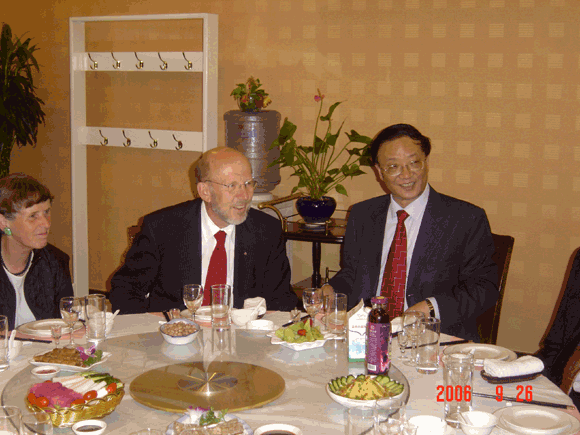 25日晚上,匡校长设宴招待了Pucher教授及其他国外来宾。匡校长对各位客人表示了热烈的欢迎,希望各位专家继续支持理工大学的发展。