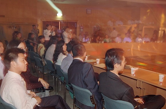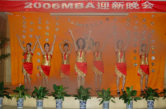 一段动感、欢快的现代舞拉开了酒会的序幕,舞蹈《不得了》,反映了广大06级新同学的激动欢喜之情,诗朗诵《飞得更高》,表达了ob真人广大MBA学子对学校深情的爱,也表达了大家对于MBA梦想的期盼之心。相声《大话MBA》展示了MBA学子幽默、诙谐的一面,也在笑声中将广大06级新生的入学感受向大家一一道来。
