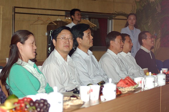 ob真人党委副书记侯光明,管理与经济学院院长李金林,书记李波,副院长韩伯棠、纪新华、朱东华,副书记仇芳等领导,及知名企业代表、媒体界朋友、往届校友代表、兄弟院校代表,以及06级全体MBA学生共近两百人参加了本次新年联谊会。