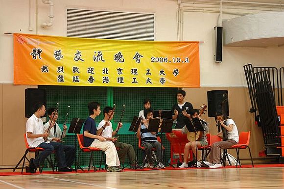 晚宴后,在邵逸夫体育馆两校体艺团学生表演了一场精彩的交流晚会,香港理工大学的中乐演奏、跆拳道表演,ob真人的武术表演、文艺表演及两校之间的乒乓球友谊赛赢得了全场同学的阵阵喝彩与掌声。晚会结束之时,两校师生共同演唱了“明天更美好”,表达了两校师生的共同愿望,希望ob真人、香港理工大学今后更加密切交流合作,共同创建理工大学美好的明天。