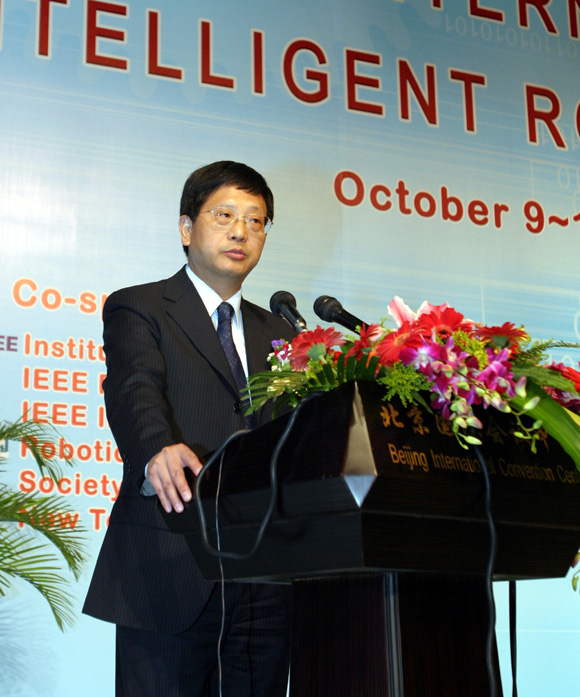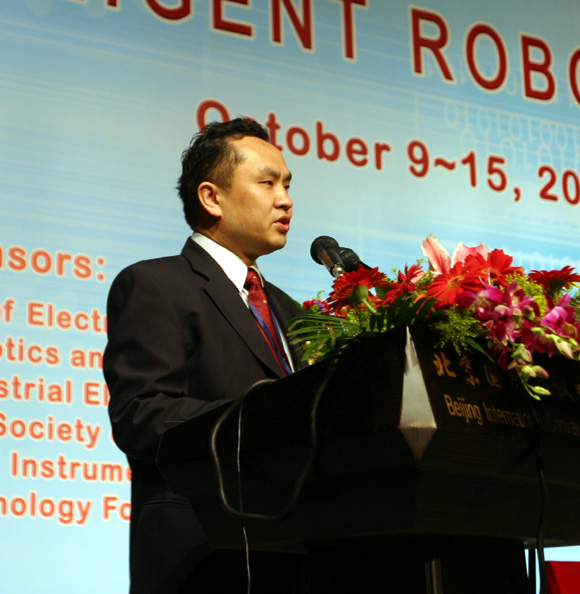 10月11日上午8点,由我校与IEEE机器人与自动化协会、日本机器人学会共同主办的2006年IEEE/RSJ智能机器人与系统国际会议在北京国际会议中心隆重开幕。我校校长匡镜明、常务副校长李志祥,及国防科学技术工业委员会副主任金壮龙、中国科协书记处书记冯长根、科技部高新司自动化处处长蔡文沁等领导出席了开幕式。