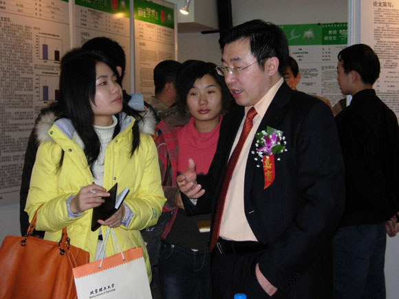 开幕式结束后,各位领导、嘉宾莅临了展示现场参观指导,近400名研究生同学们前往了展厅现场参观,并进行学术交流与探讨。